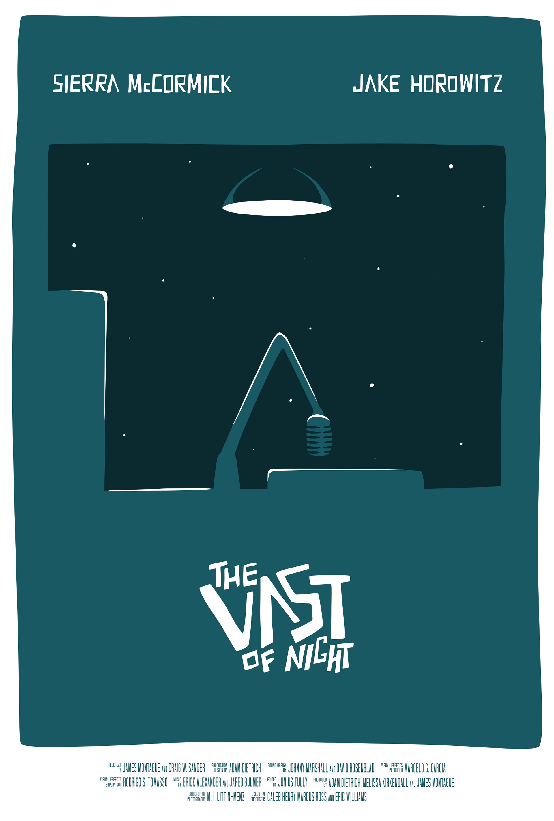 This was a poster commissioned for the award winning feature-length film, "The Vast of Night." The design calls back to the famous "Vertigo" poster from the same era as the setting of the film.